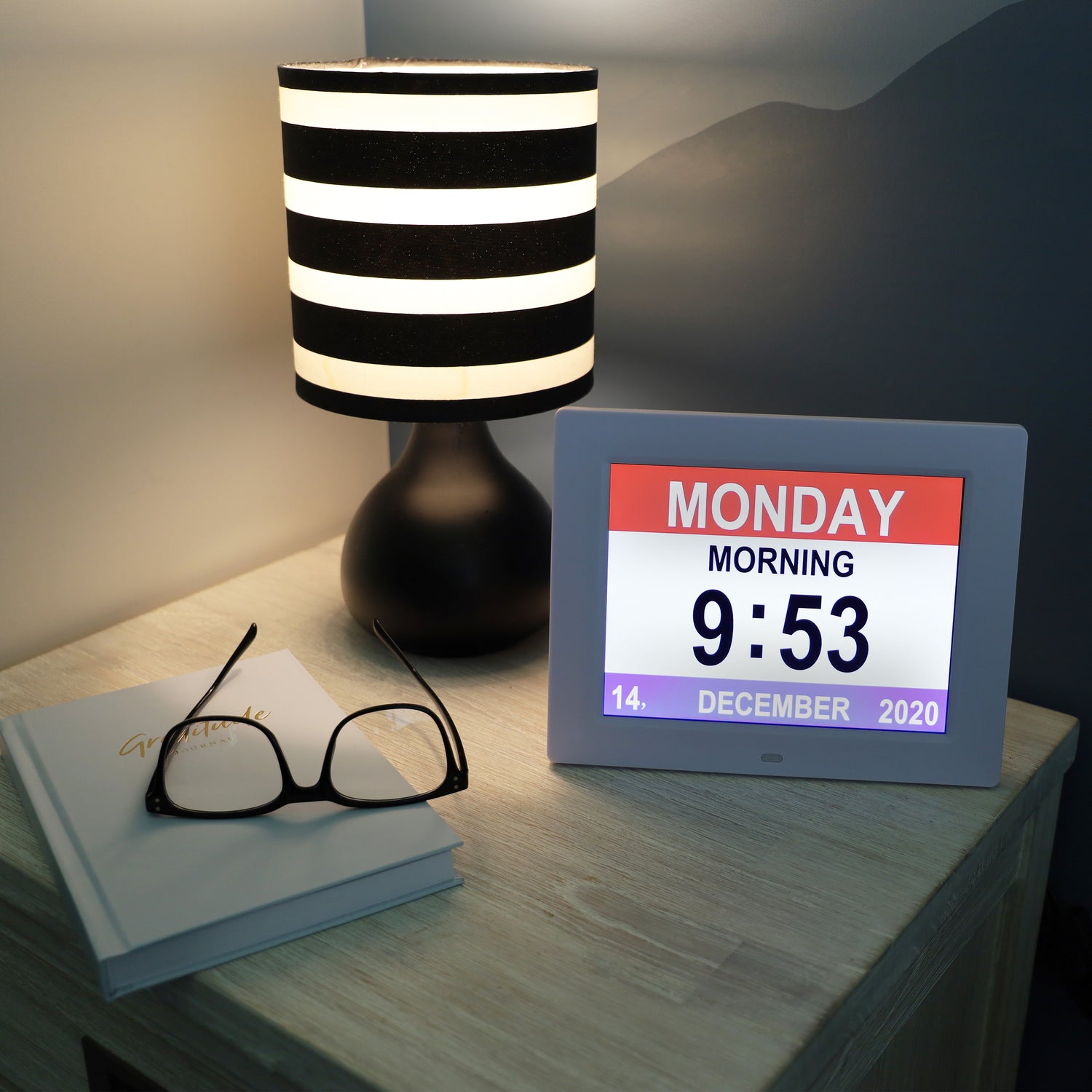 With a large screen and easy to read words and numbers, the Digital Calendar Clock is ideal for those with impaired sight as well as anyone living with dementia. People with dementia will often lose track of time and can be unclear on the date or day of the week. Being able to quickly and easily identify the day of the week, month and time can be extremely comforting and grounding and bring their focus back into the present time.