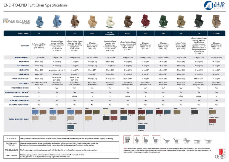 Pride D30 Heavy Duty Three Position Power Lift Chair