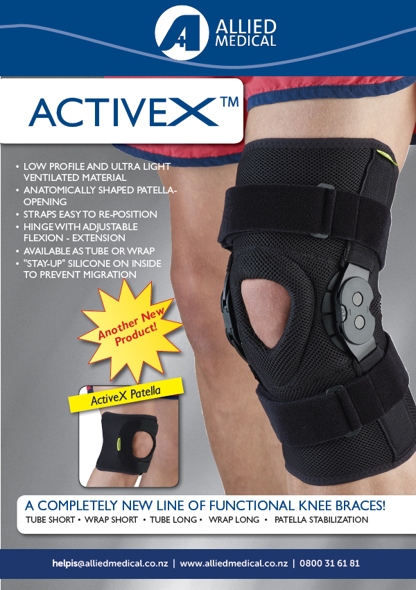 The active X short braces are made from a ventilated spacer material. This particular brace has one circular strap on the thigh section and one on the calf section. This ensures there is compression on the leg. The straps can be positioned individually. All straps have a plastic D-ring. This short version is available in a tube version and a wrap-around version. Both have rigid uprights with flexion- and extensions stops that can be changed for different range of motion settings. Joint is pre-set in 10 degrees of flexion. Other flexion/extension stops are included in the package.