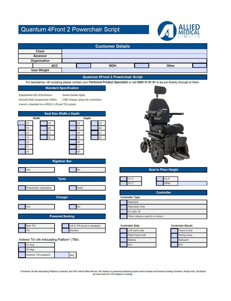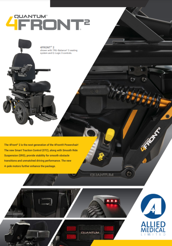 The 4Front 2 Powerchair offers advanced stability and comfort with Smart Traction Control (STC) and Smooth Ride Suspension (SRS). It features durable 4-pole motors, lightweight redesigned caster arms, and comes with expandable electronics. The standard TRU-Balance 3 power positioning system is growable, and it's compatible with both TRU-Balance 3 or TRU-Balance 4 Seating Systems.