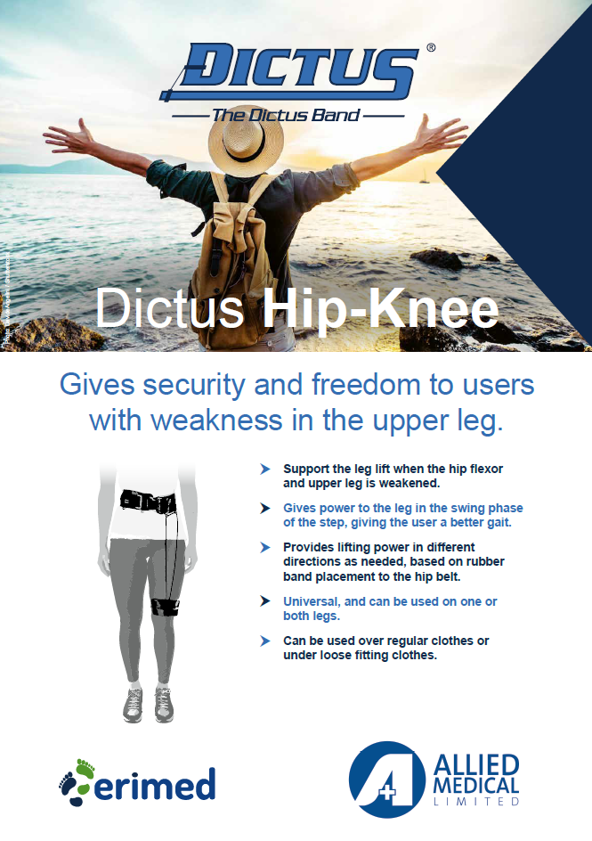 Dictus Hip – Suitable for individuals with weakened leg muscles or hip flexors, such as those with Multiple Sclerosis (MS). It includes a comfortable hip belt and elastic rubber bands that assist with hip flexion, making it easier to lift the leg while walking.
