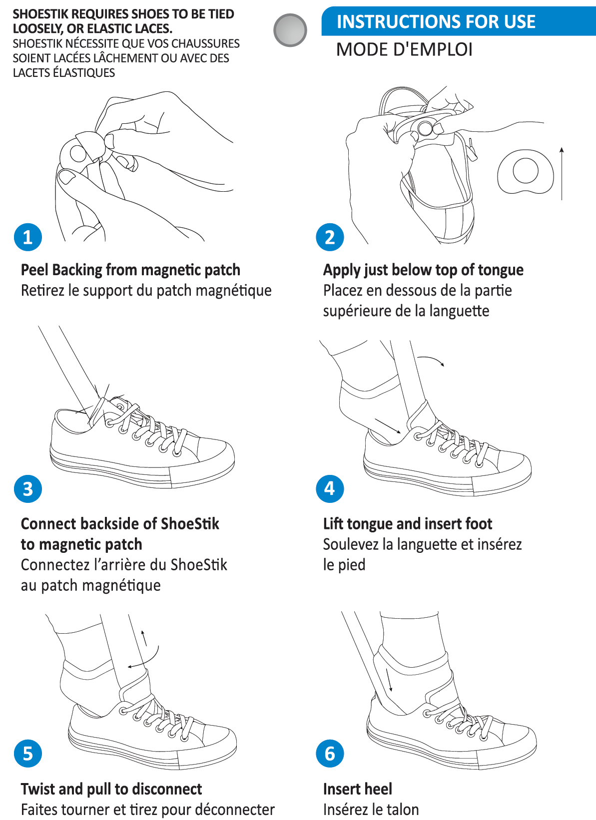 Simply apply the patch inside the heel of each shoe, and your ShoeStik will magnetically connect for fast, hands-free dressing. Whether you’ve got different shoes for different activities or want to equip another person in your household, this spare patch pack keeps everyone ready to go.