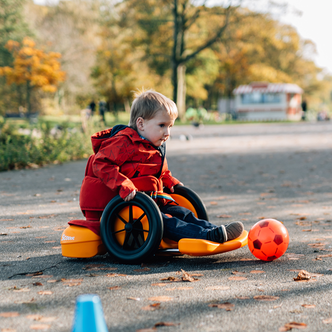 The new and improved Scooot 4-in-1 mobility rider provides an early experience of independence for lots of kids with limited movement. Scooot's 4-in-1 design means 4-times the fun and 4-times as many chances to fulfill potential. Scooot has four cool configurations: Scooot, Ride, Pooosh and Crawl. Different configurations for different abilities and different ways to play. Starting with Crawl (allowing kids to explore on their tummy) and moving through Scooot (lets kids sit up and use their feet), Ride (lets kids propel themselves around the floor by manoeuvring the wheels) and finally onto Pooosh (lets somebody else do the hard work. If your child isn't ready to propel themselves yet or they're just tired, you just attach the Pooosh handle).