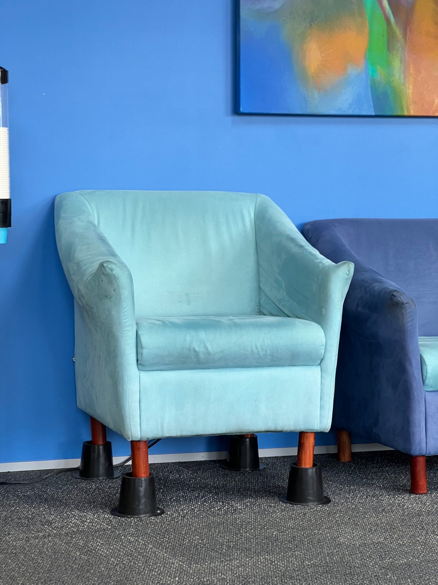 Moulded cone plastic chair raisers to make it easier for users to sit down and get up. These raise the chair by 80 mm and are steady when they are in use.