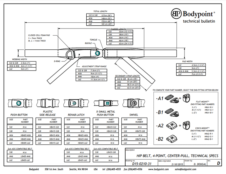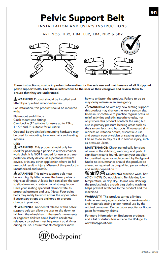Available in a range of sizes and in two mounting styles, Flat Mount or Cinch Mount, this belt is versatile and suitable for a variety of chairs and users. Like all Bodypoint products, it is built with patented materials and construction for comfort, strength and long-term performance.