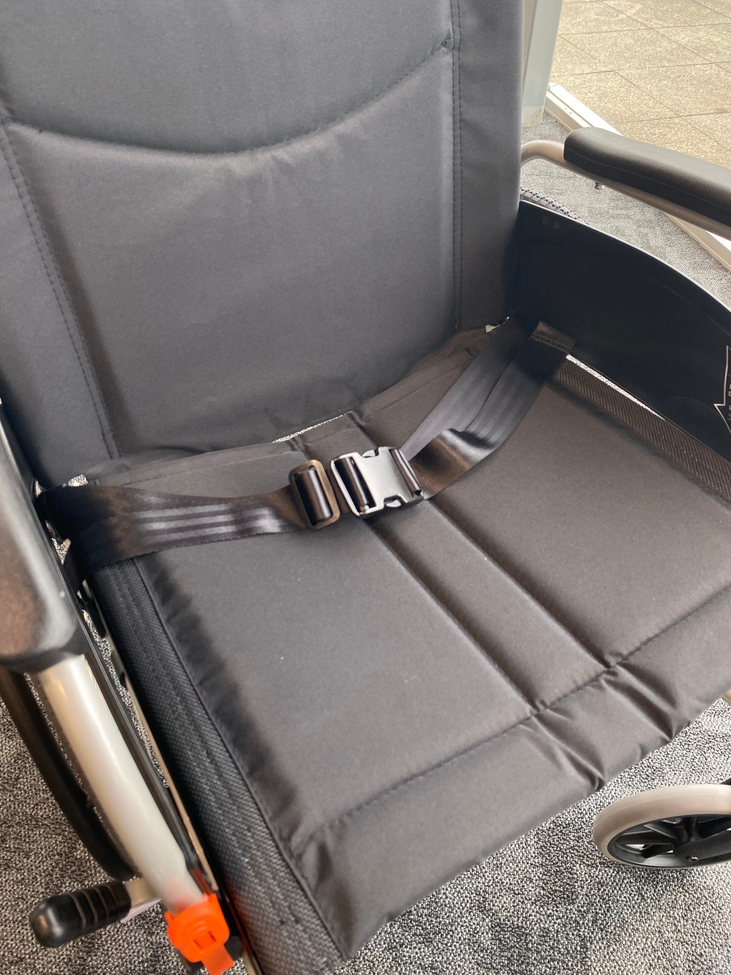 The Flexx Pelvic Positioning Belt ensures security and comfort for wheelchair users. Adjustable and easy to use with a push-button buckle.
