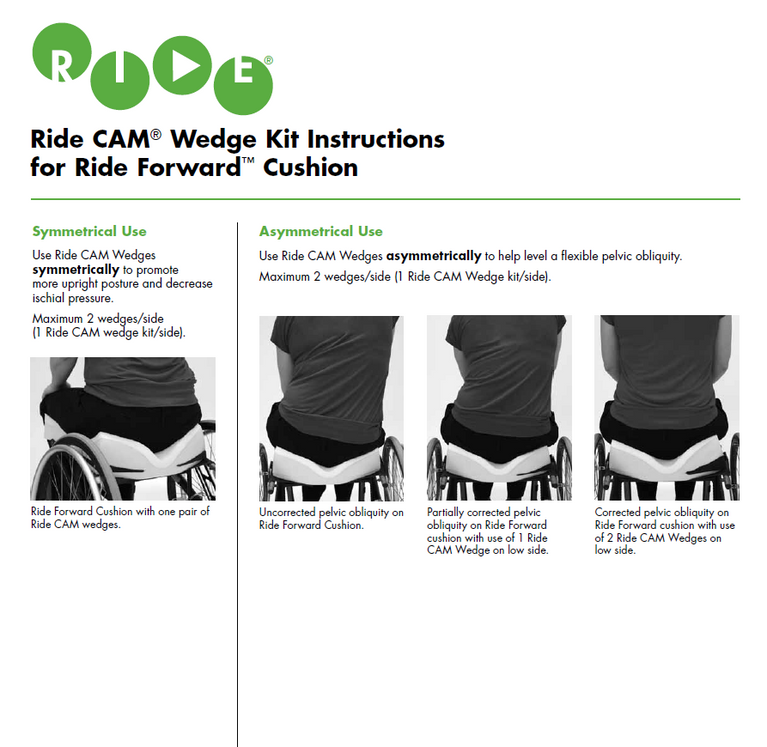 Use Ride CAM Wedges symmetrically to promote more upright posture and decrease ischial pressure.