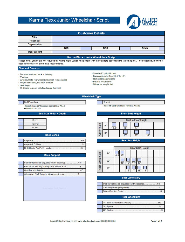 Please note that if there are no changes to the standard specification a script is not needed when ordering.