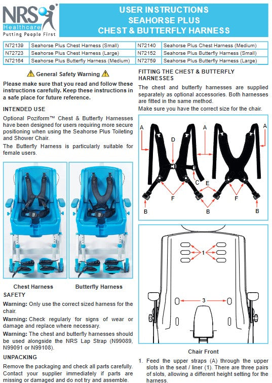 Optional Accessories: Seat Liners Anterior Support, Chest Harness, Butterfly Harness