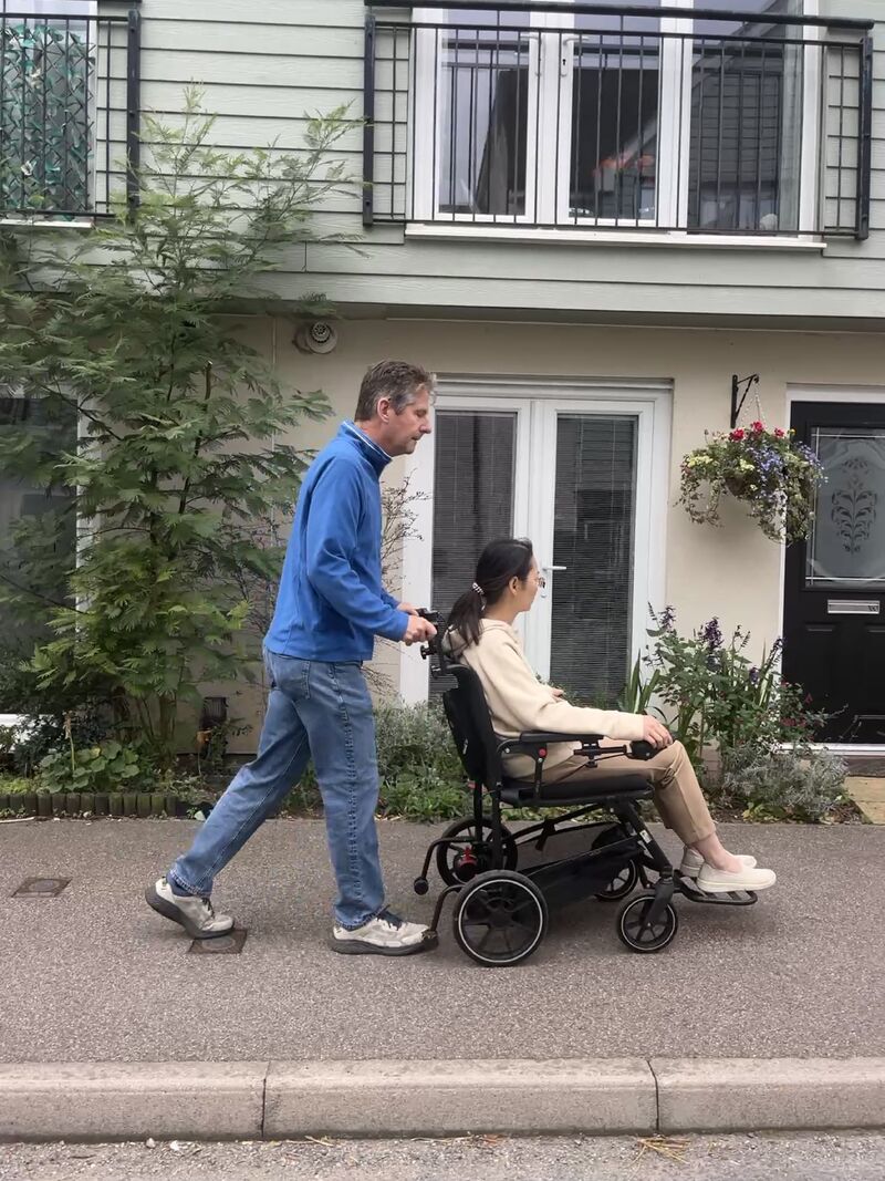 The eFOLDi Navigator Attendant Height Extension Bar is an accessory for the eFOLDi Navigator powerchair, designed to make guiding and manoeuvring more comfortable for taller carers and attendants. It raises the height of the Navigator’s handles to create a more natural, ergonomic hand position when driving the chair from behind.