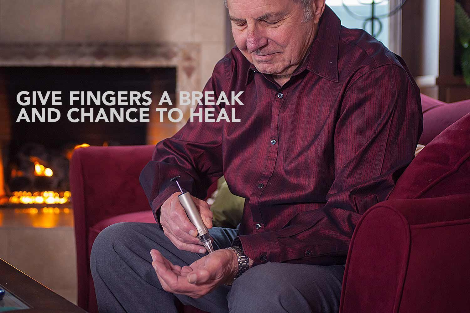 Avoid Pain Nerves with ultra-precise depth control using 6 levels of patented Contact Tips. Fingers that look like pincushions will be a thing of the past.