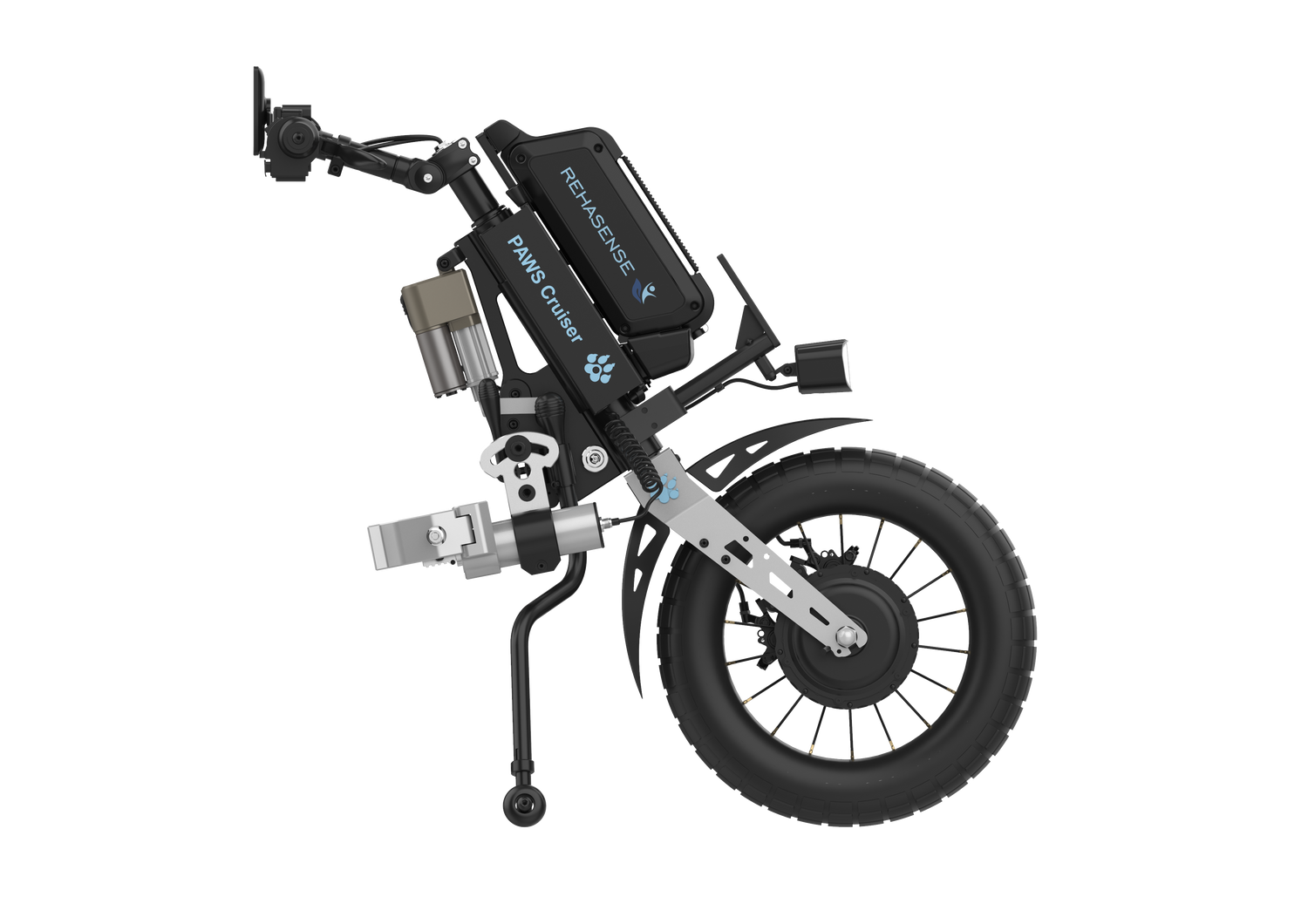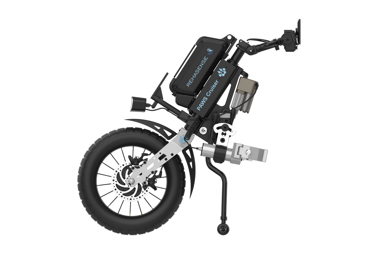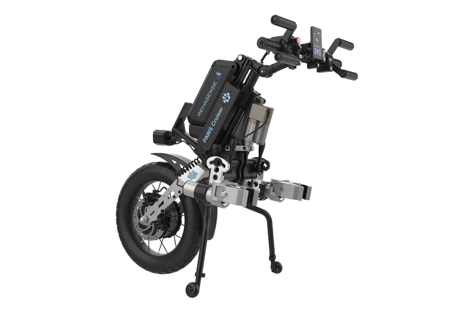The PAWS Cruiser power add-on is your go-to solution for when city streets turn into gravel paths, cobblestones, or other uneven surfaces. Designed to bridge the gap between smooth urban terrain and more adventurous outdoor environments, the Cruiser is fitted with a robust 16” front wheel to offer excellent comfort, stability, and performance.